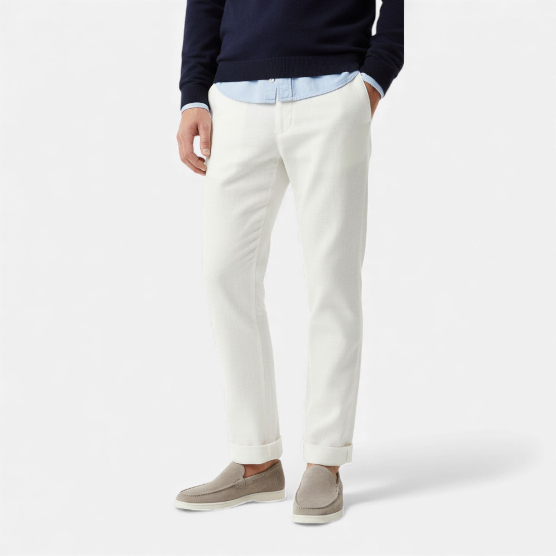 Your light grey pair pairs effortlessly with chinos, linen trousers or casual summer tailoring, creating a balanced, elevated style for occasions both relaxed and refined.