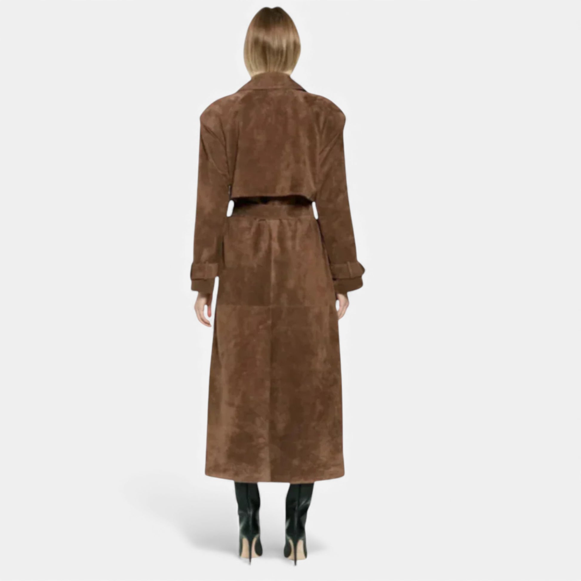 With its classic long-line shape and belted waist, this coat gives your look a naturally sculpted elegance that enhances both casual and smart ensembles. The rich suede finish offers your style a delicate touch while delivering reliable comfort through cooler seasons. Every detail—from the clean seams to the flattering drape—supports your desire for pieces that feel sophisticated, dependable, and deeply glamorous. This is the wardrobe essential that quietly transforms your daily style into something truly distinguished.